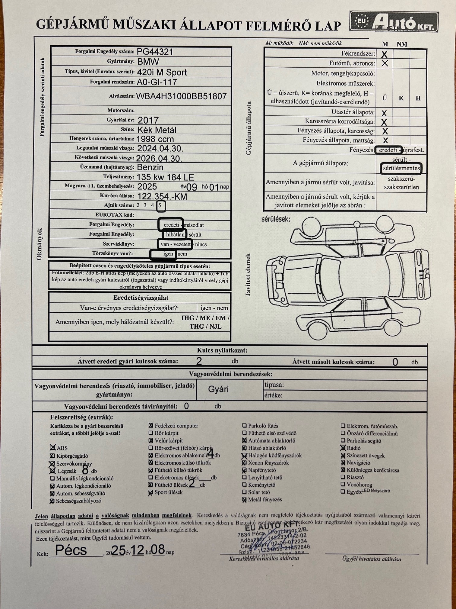 Első tulajdonostól,kitűnő,tényleg újszerű állapotban végig BMW márkaszervizben vezetett szervizkönyvvel!Főbb extra tartozékok a teljesség igénye nélkül: külső M sport csomag,belső M sport csomag,M sport futómű, M sport multifunkciós kormánykerék,adaptív LED fényszórók automatikus távolsági fény funkcióval,gyári navigációs rendszer,elektromosan nyitható csomagtér ajtó,elektromosan állítható első sport ülések a vezetőoldalon memóriával,kulcs nélküli nyitás-zárás-indítás,Head-Up display,elektromosan behajló külső tükrök,tempomat,gyári riasztó,fekete tetőkárpit,fényre sötétedő külső-belső tükrök,parkoló radar elöl-hátul,indukciós telefon töltő!