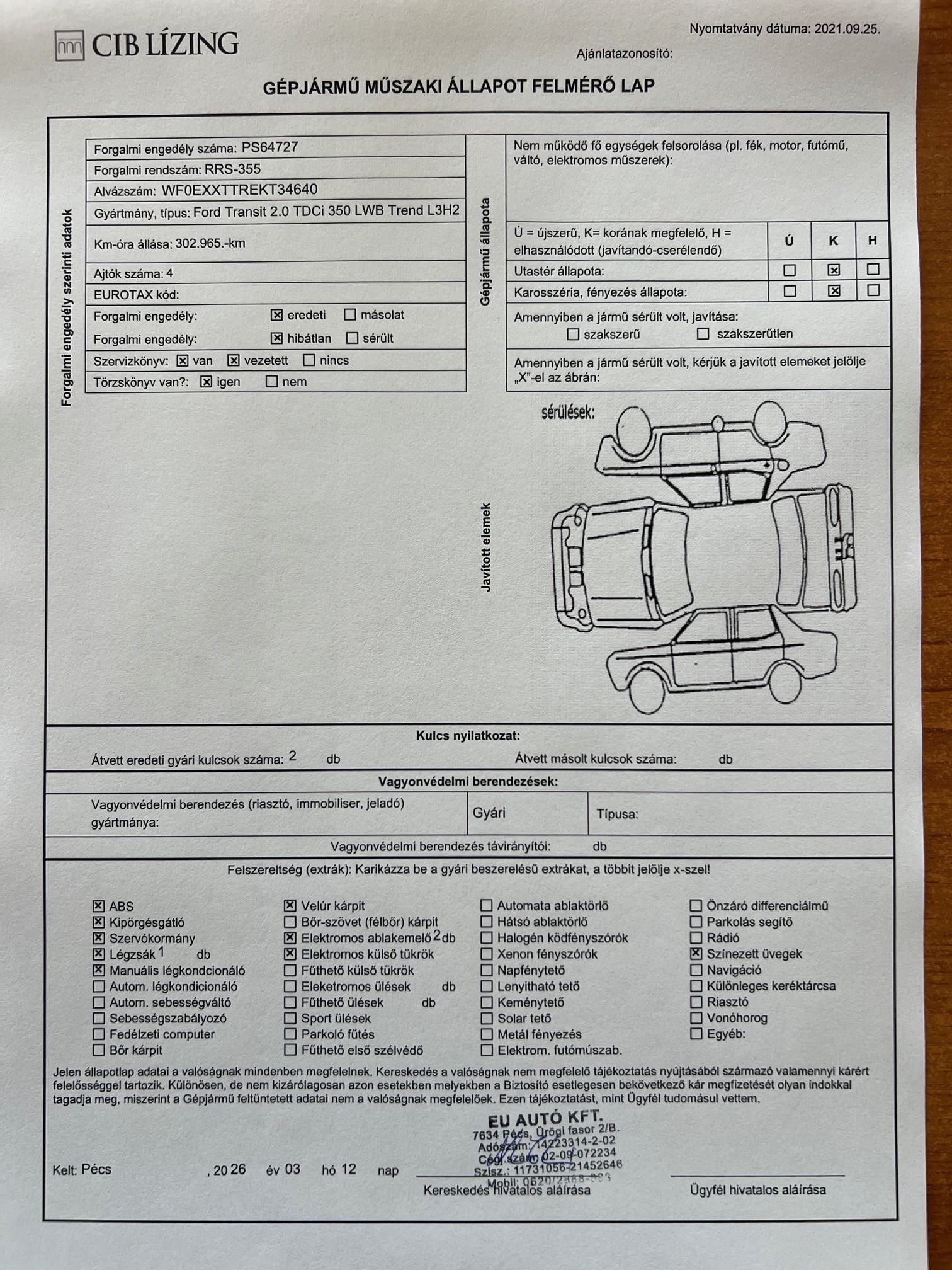 Főbb extra tartozékok: parkolóradar elöl-hátul, fűthető első szélvédő, LED nappali menetfény, elektromos első ablakok, elektromosan állítható, fűthető külső tükrök, bőr multifunkciós kormánykerék, tempomat, eső-fény szenzorok, Bluetooth telefon kihangosító, 2 oldali toló ajtó!