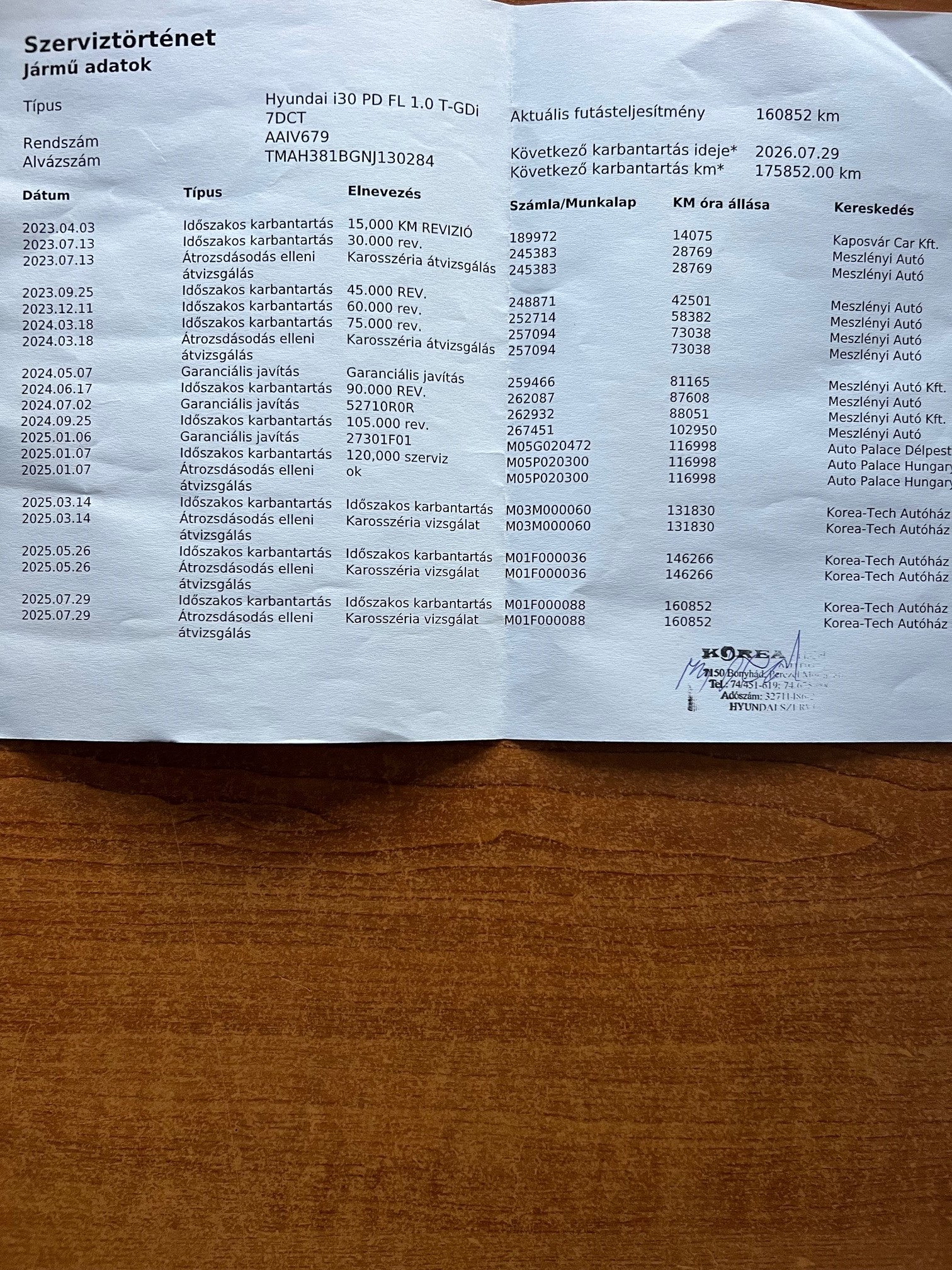 Szervízkönyv