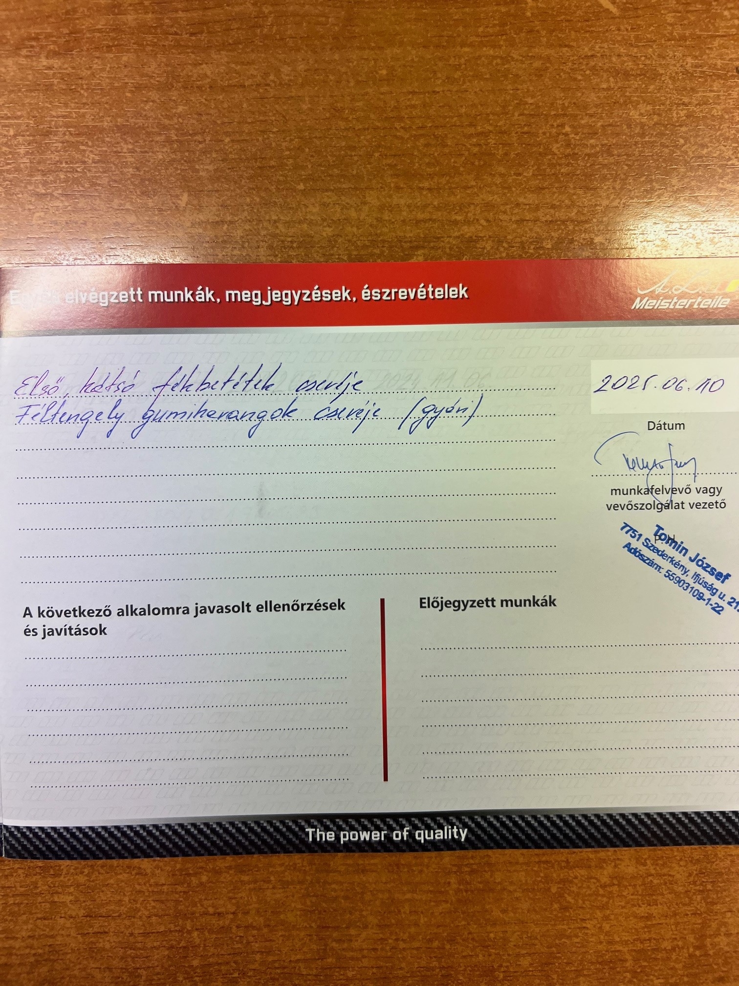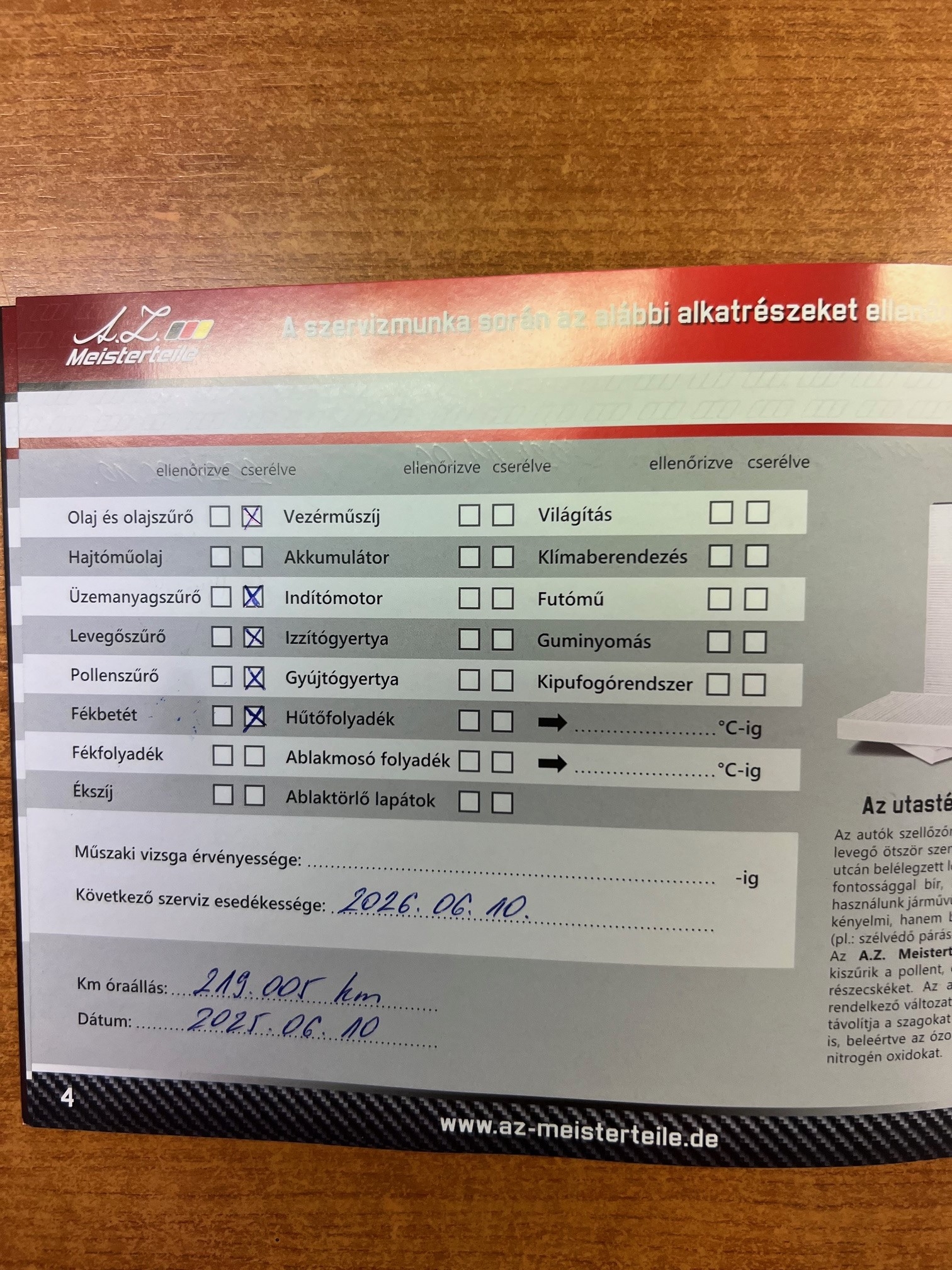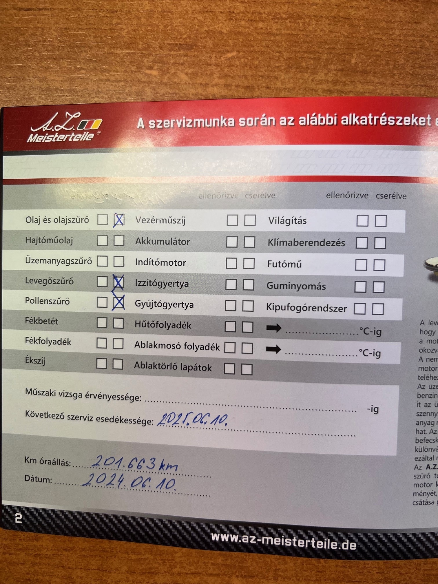 Szervízkönyv