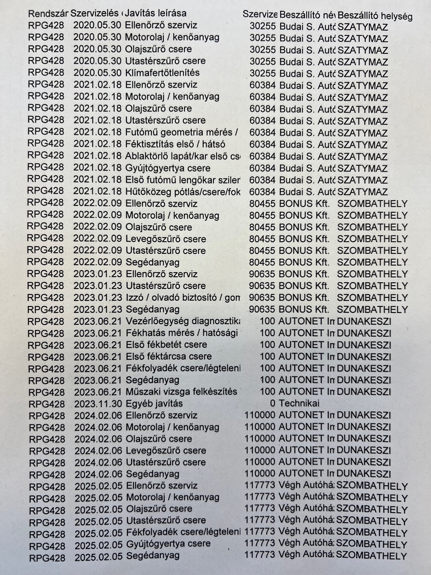 Szervízkönyv