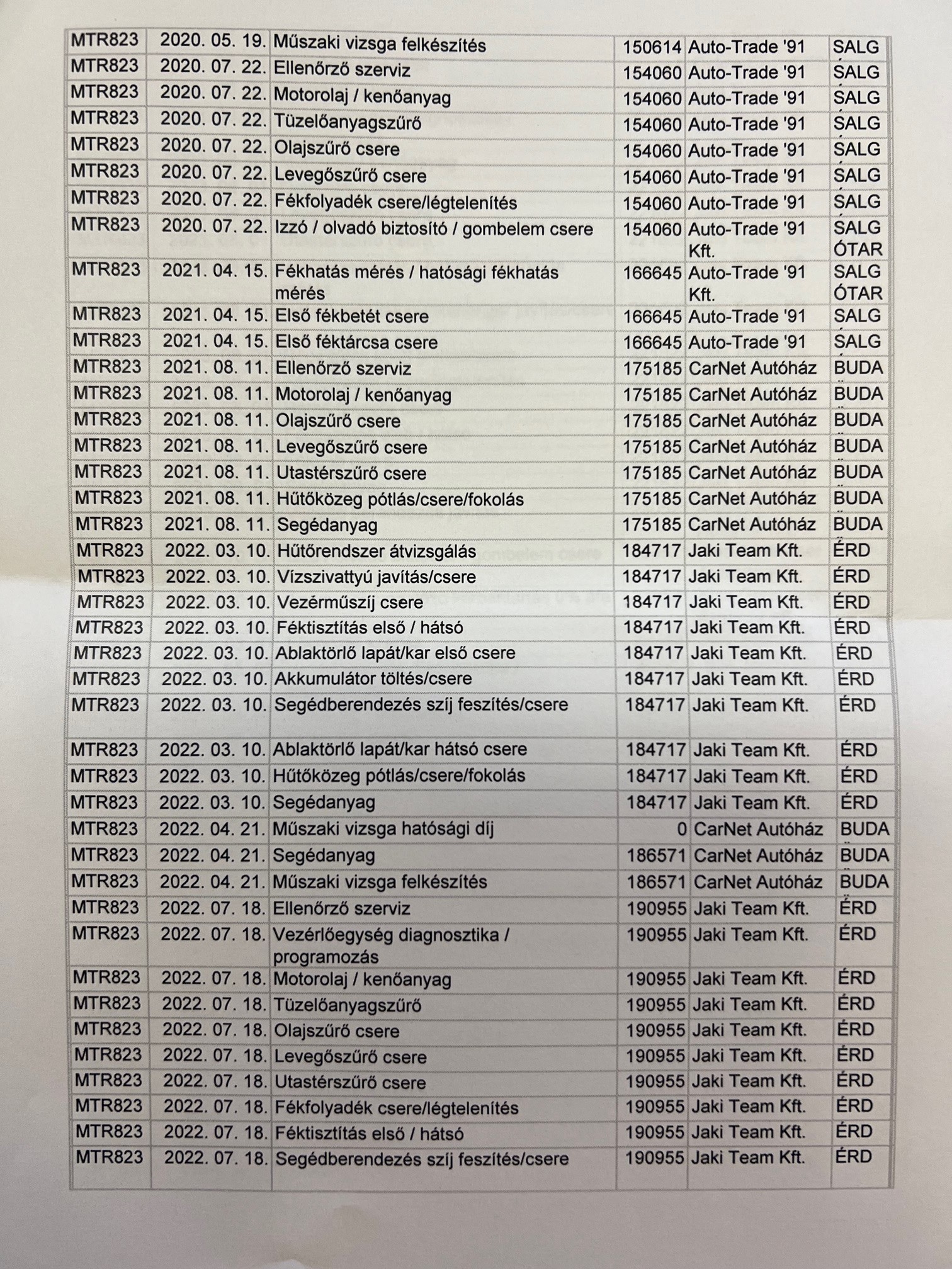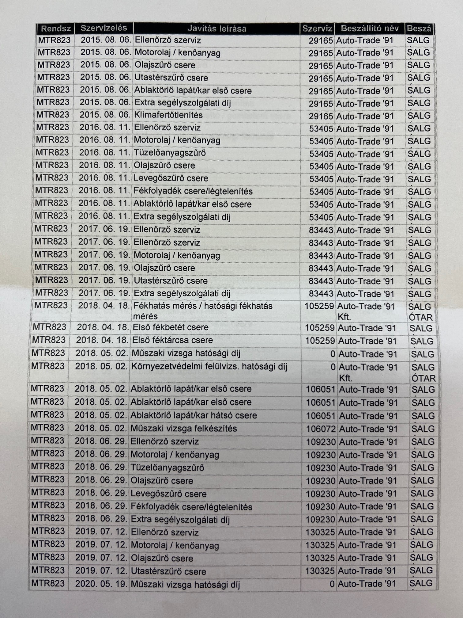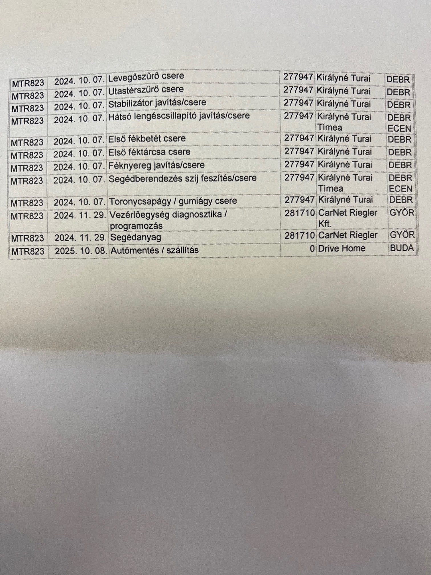 Szervízkönyv
