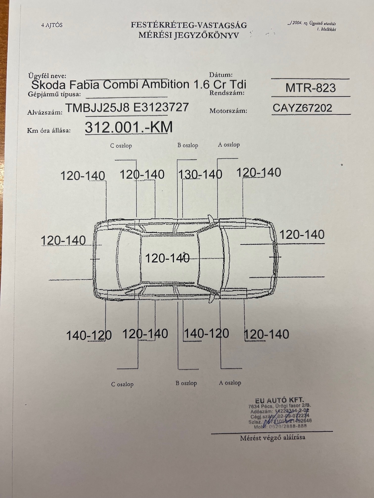 Frsz: MTR-823,alvázszám: TMBJJ25J8E3123727