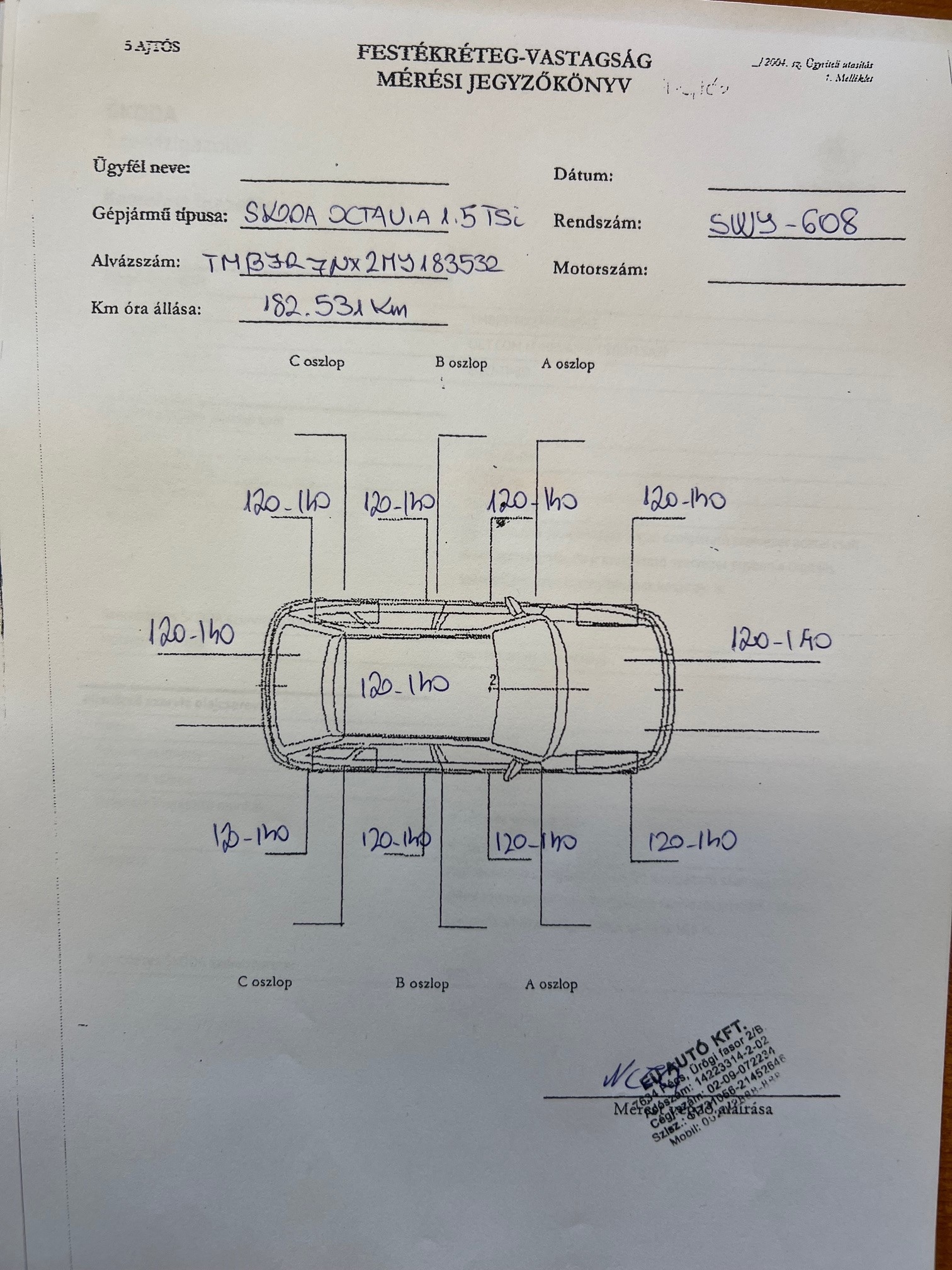 Euro6-os motor!Alvázszám:TMBJR7NX2MY183532,frsz:SWY-608