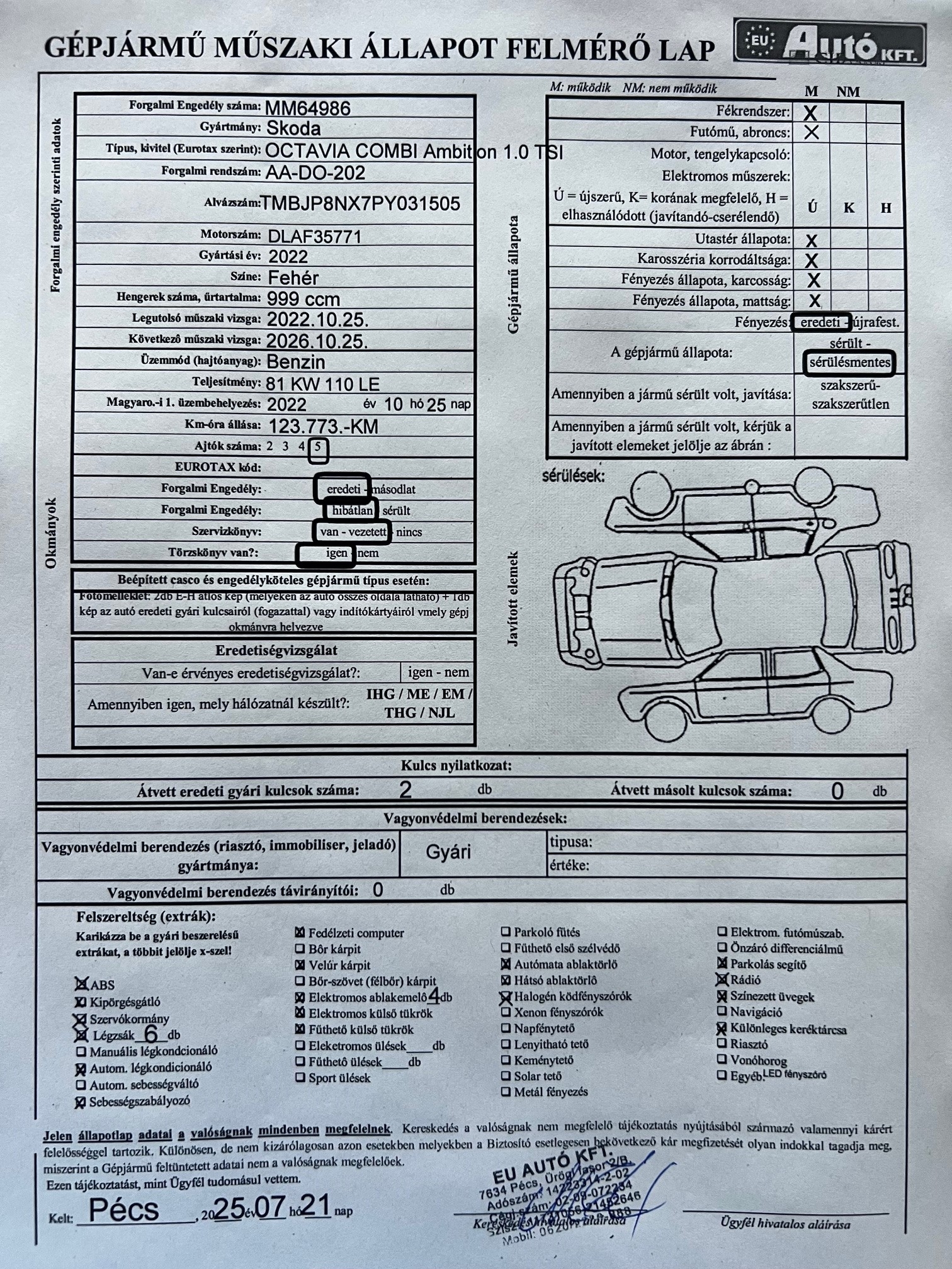 Magyarországi, első tulajdonostól, hibátlan újszerű sérülésmentes állapotban, végig márkaszervizben vezetett szervizkönyvvel! Gyári garancia 2026.10-ig vagy max 200.000Km-ig! Cégünk az EU Autó Kft. azonnali készpénz fizetéssel megvásárolja használt gépjárművét 2015-ös évjárattól, lehet akár banki hitellel terhelt illetve enyhén sérült is! Részletek és azonnali értékbecslés a saját weboldalunkon! w w w euautokft hu BRUTTÓ ÁR! Áfa cégeknek visszaigényelhető nyílt végű pénzügyi lízing szerződés esetén! Euro6-os motor! Frsz: AAD0-202,alvázszám: TMBJP8NX7PY031505