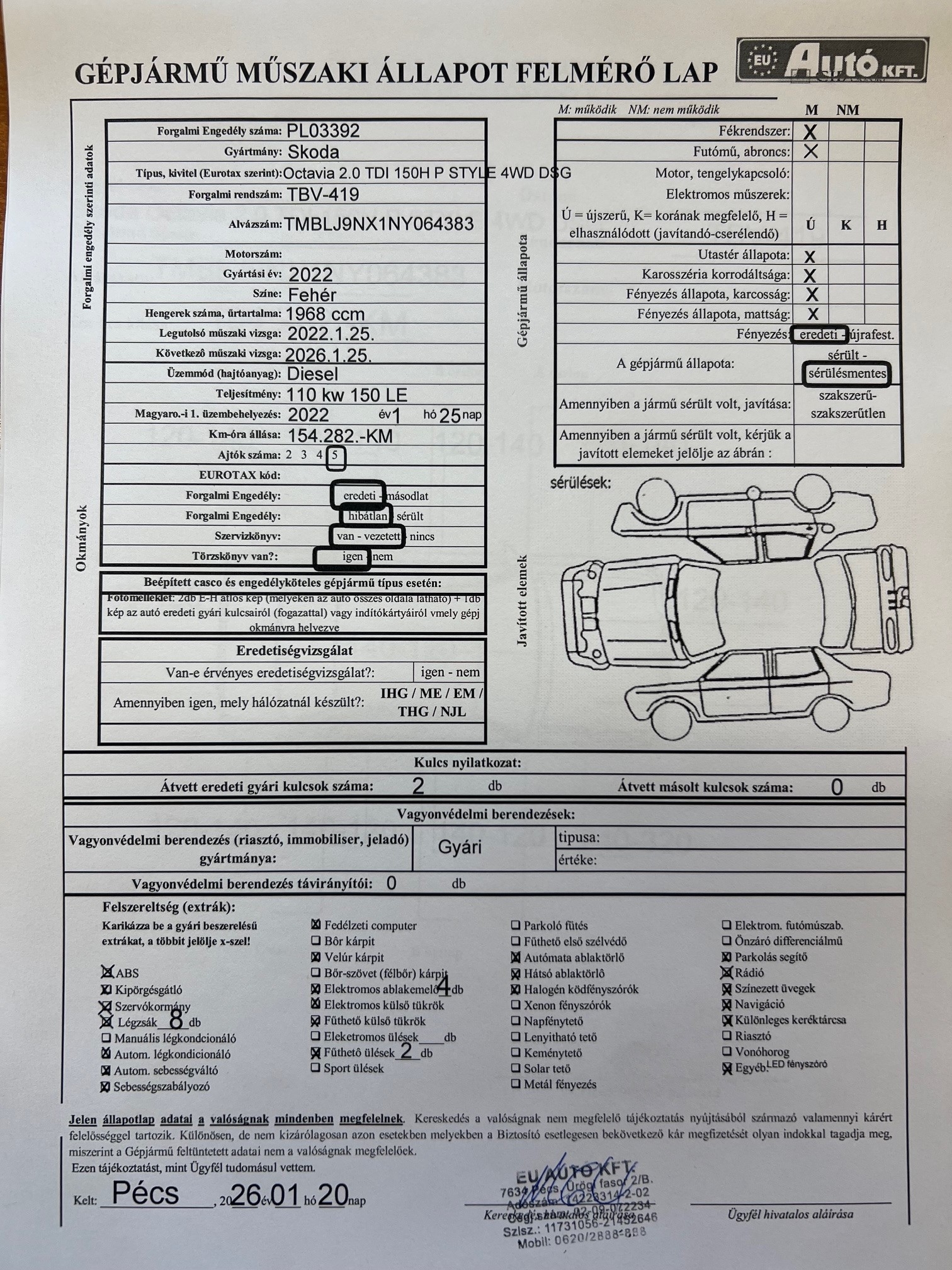 Magyarországi, első tulajdonostól, hibátlan újszerű állapotban, végig Skoda márkaszervizben vezetett szervizkönyvvel!Főbb extra tartozékok a teljesség igénye nélkül:elektromosan nyitható panoráma tetőablak,4x4 kerék meghajtás,LEd matrix fényszórók automatikus távolsági fény funkcióval,fűthető első ülések,külső króm keretek,és króm tetőléc,sötétített hátsó üvegek,parkolóradar elöl-hátul-oldalt,magától beparkoló rendszer,sávtartó rendszer,holttér figyelő rendszer,18"-os "Perseus" gyári alu felnik,digtális műszerfal,gyári navigációs rendszer,LED belső hangulat világítás,tolatókamera,gyöngyház fehér fényezés,hátsó oldal légzsákok,