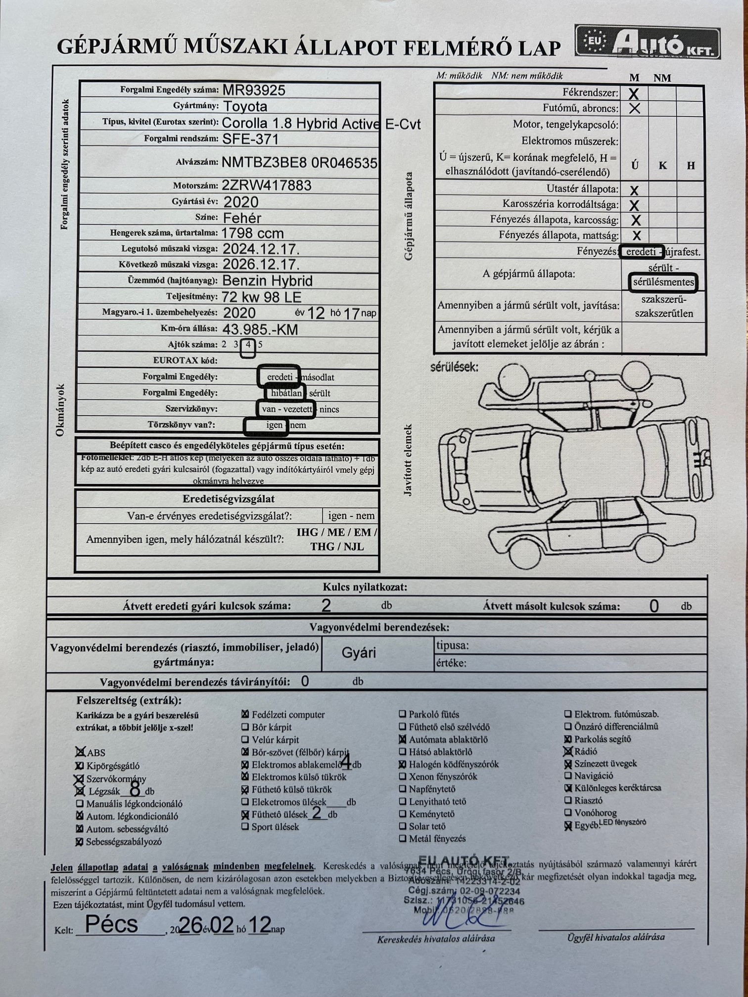 Toyota Corolla sedan 1.8 Hybrid Active e-CVT (2020. 12)