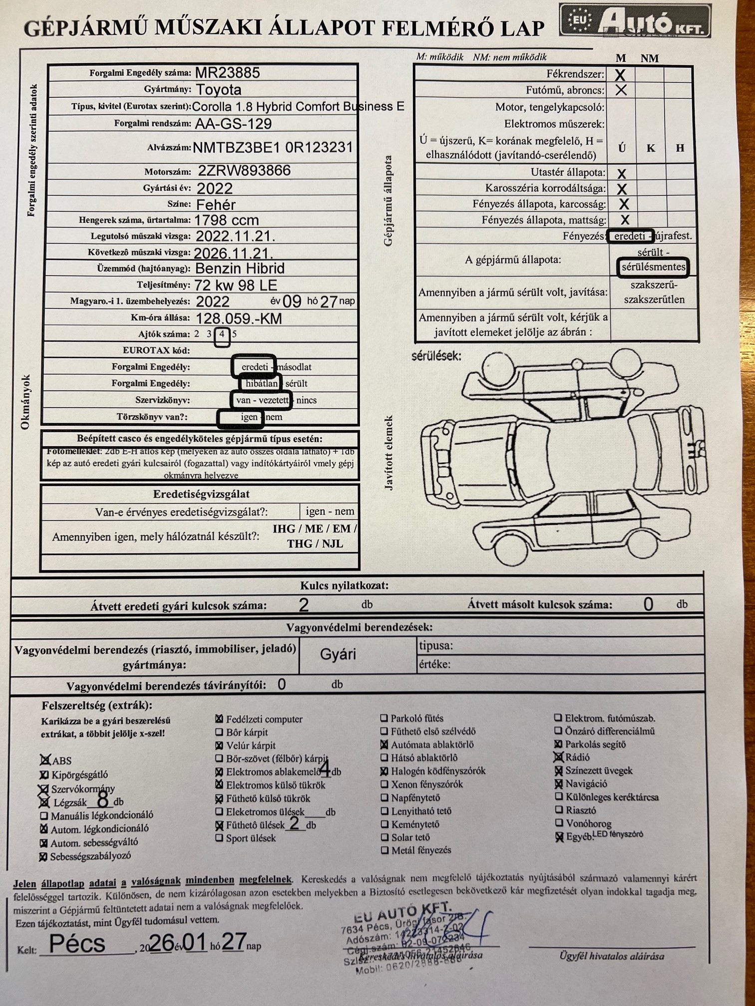 Magyarországi, első tulajdonostól, hibátlan újszerű sérülésmentes állapotban, végig Toyota márkaszervizben vezetett szervizkönyvvel!