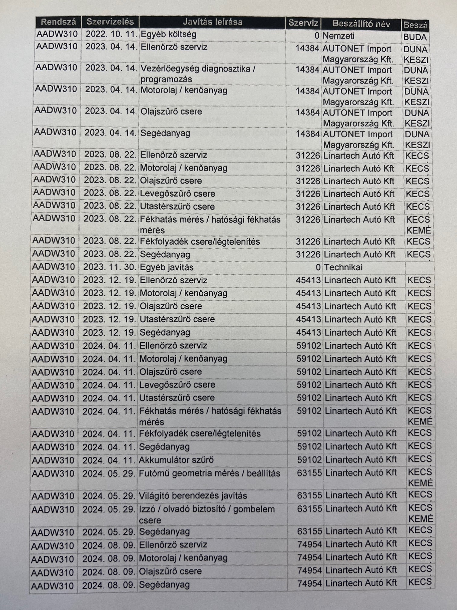 Szervízkönyv