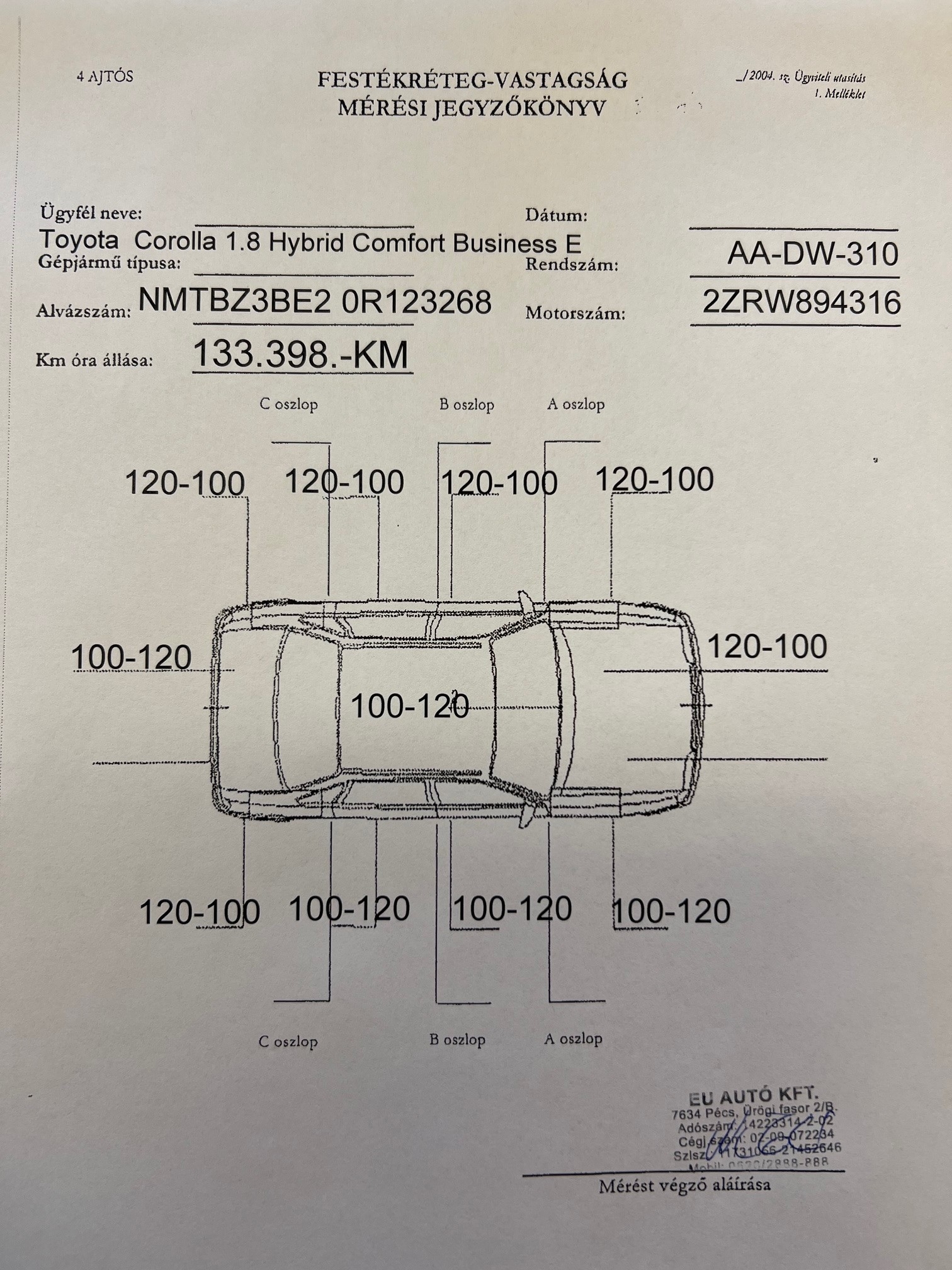 Euro6-os motor! Alvázszám: NMTBZ3BE20R123268 ,frsz: AADW-310